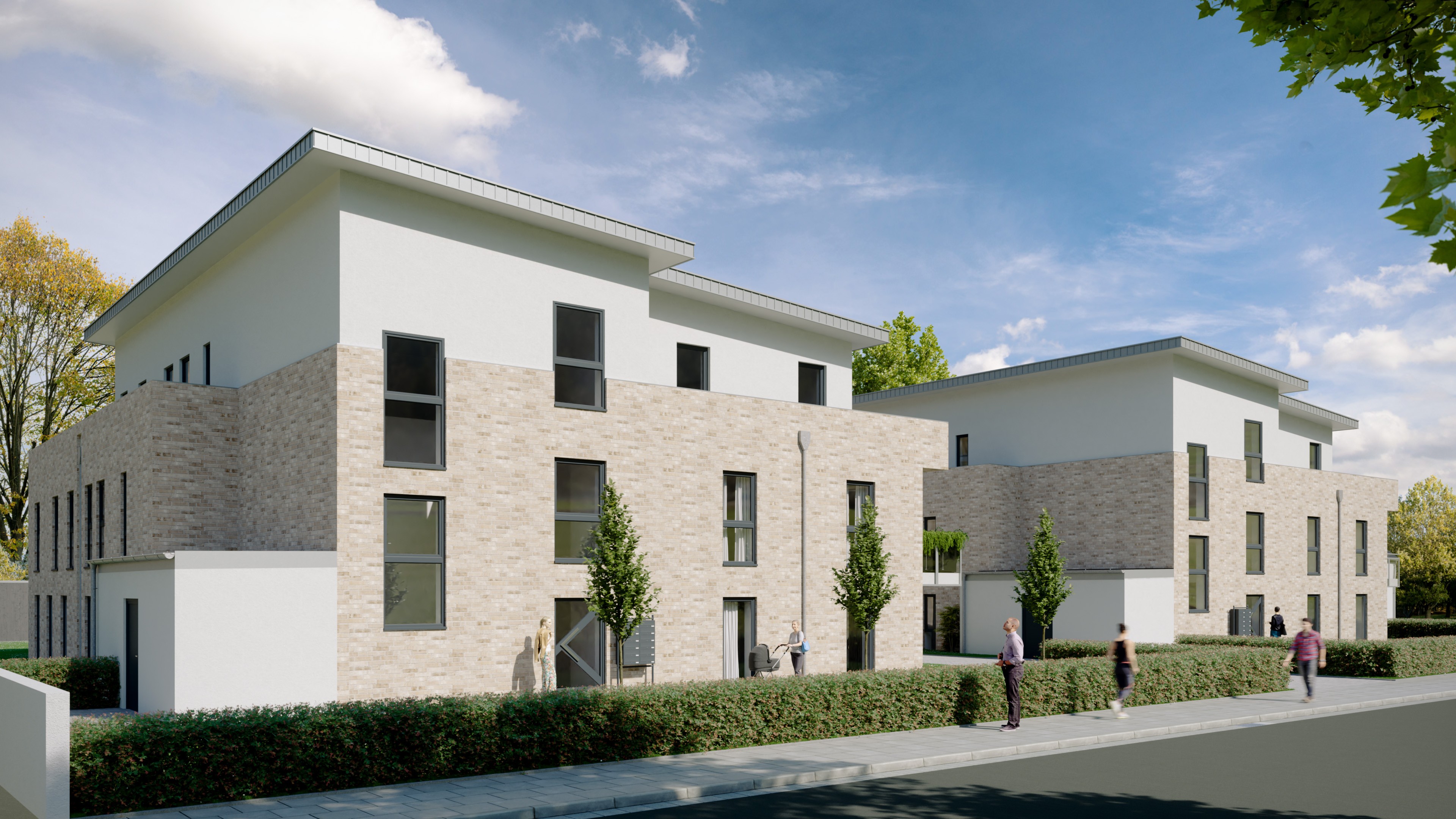 Zwei moderne Mehrfamilienhäuser mit jeweils sieben Wohneinheiten